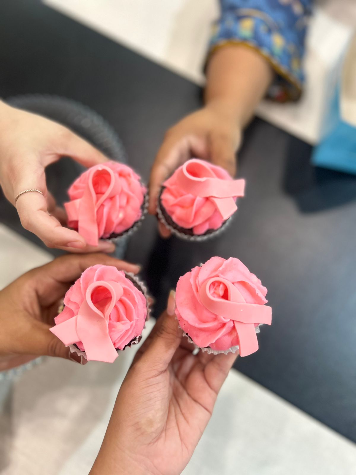 accessible live online, allowing family members to join. Pink ribbons were